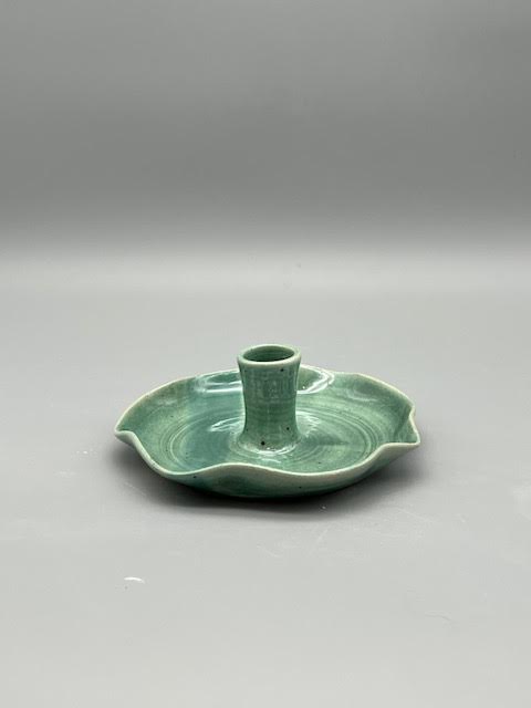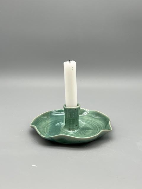 Drejadt ljusfat med vågig kant i stengods från min keramikverkstad. Varje ljusstake är unik med en rustik känsla.